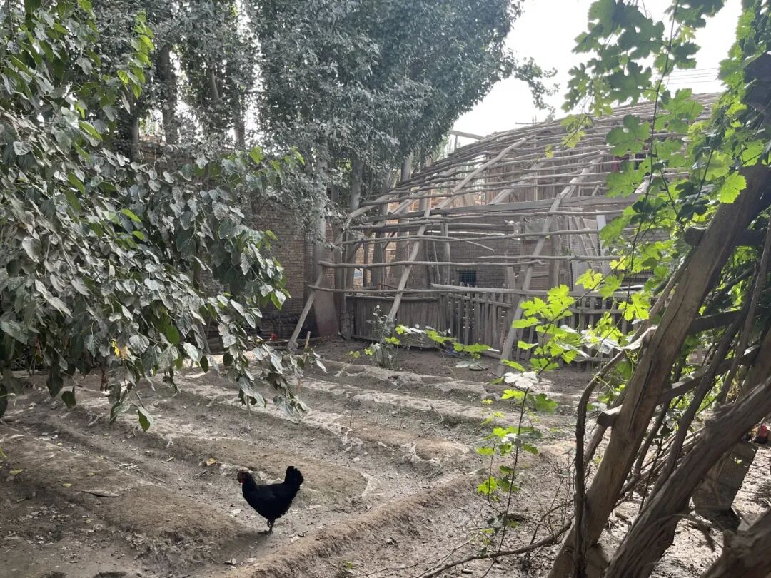 访谈团在伊里其乡亚甫拉克村村民伊帕尔古丽・奥布力喀斯木家中,直观感受到了庭院经济的鲜活成效:院内葡萄架上绿叶繁茂,青绿色的小葡萄正处于旺盛生长期;养殖区的鸡舍里,小鸡苗们正在进食;占地2亩的种植区内还栽种了韭菜、西红柿、杏树、无花果等果蔬作物,庭院空间被充分盘活利用。