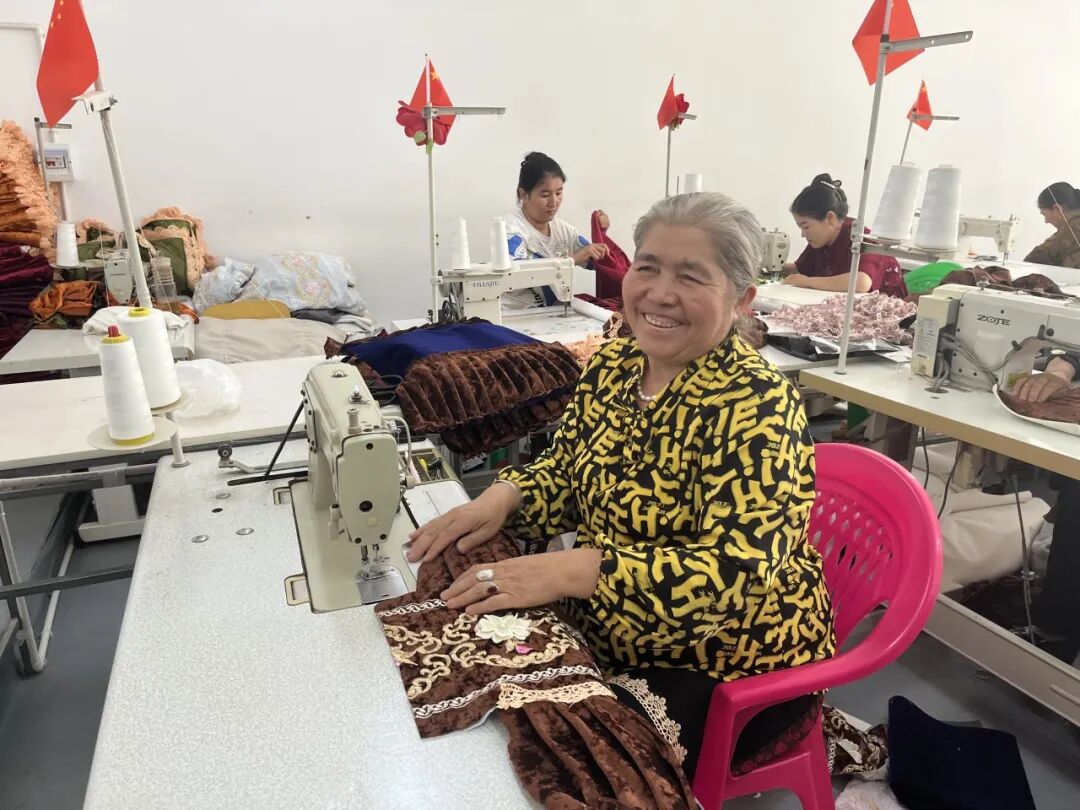 目前,缝纫厂共吸纳就业人员60人,均为当地45-65岁的中老年妇女,收入稳定且多劳多得,有效补充了家庭经济来源。同时,目前,缝纫厂与和田市宏达市场内一家千亿床上用品店建立稳定合作关系,采用“订单+加工”模式生产,由该店提供床单、被套等加工订单,缝纫厂组织员工完成加工任务,合作模式成熟、订单来源稳定。