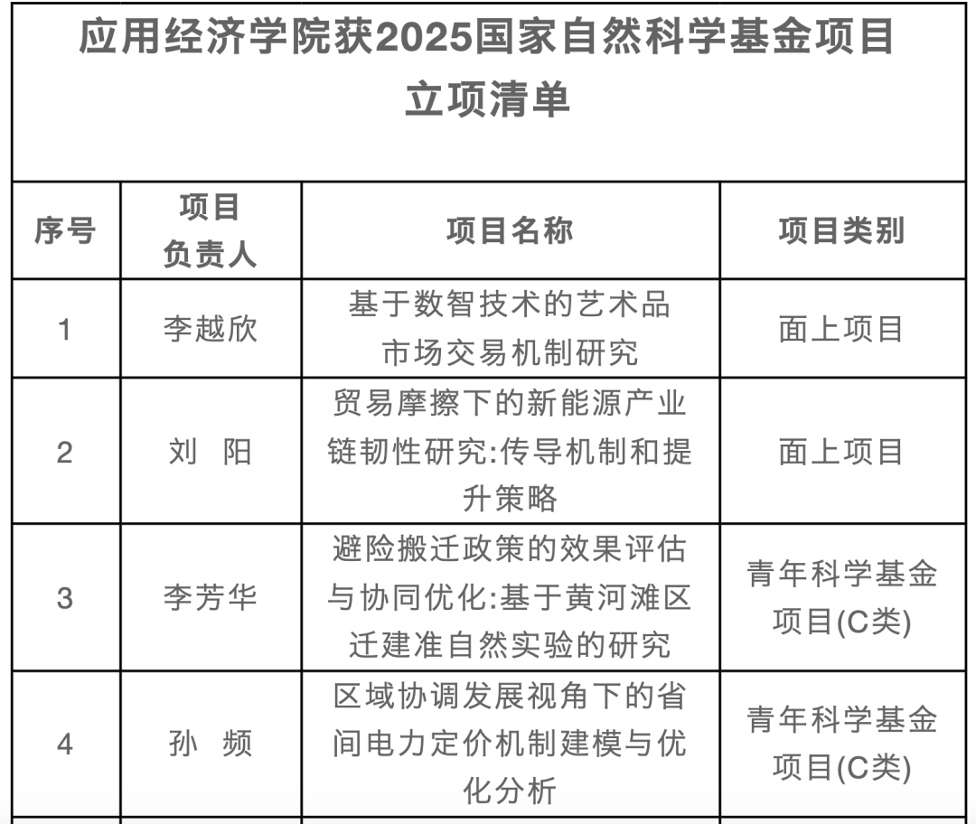 8月27日,国家自然科学基金委员会公布了2025年集中接收申请项目评审结果。探花视频 共4个项目获立项,其中面上项目2项,青年科学基金项目(C类)2项。