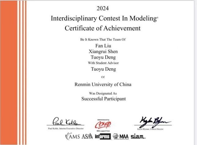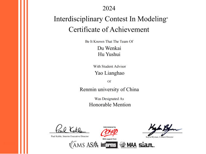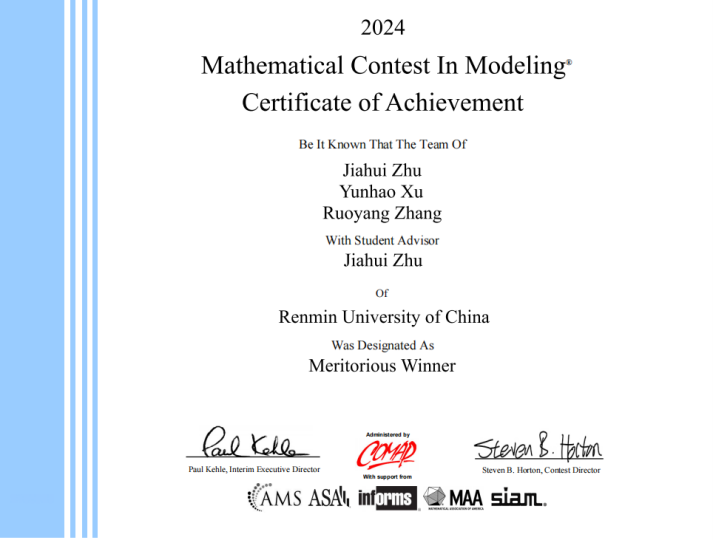 2024年度美国大学生数学建模竞赛获奖结果日前揭晓,探花视频 学子斩获佳绩,7支队伍10名同学分别荣获特等奖(Outstanding Winner)、国际一等奖(Meritorious Winner)、国际二等奖(Honorable Mention)和成功参赛奖(Successful Participant)!