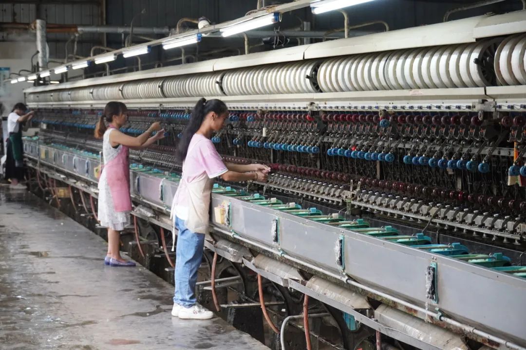▲工人正在缫丝生产线上工作