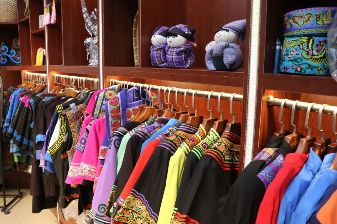 此外,该公司还积极推动隆林非物质文化遗产的传承。公司开设了“隆林壮族三层楼服饰制作技艺传承基地”,该基地不仅制作和销售隆林世居的苗、彝、仡佬、壮、汉五个民族的传统服饰,还成功入选了“广西非遗形象体验店”,通过研学和培训,带给游客沉浸式的体验。
