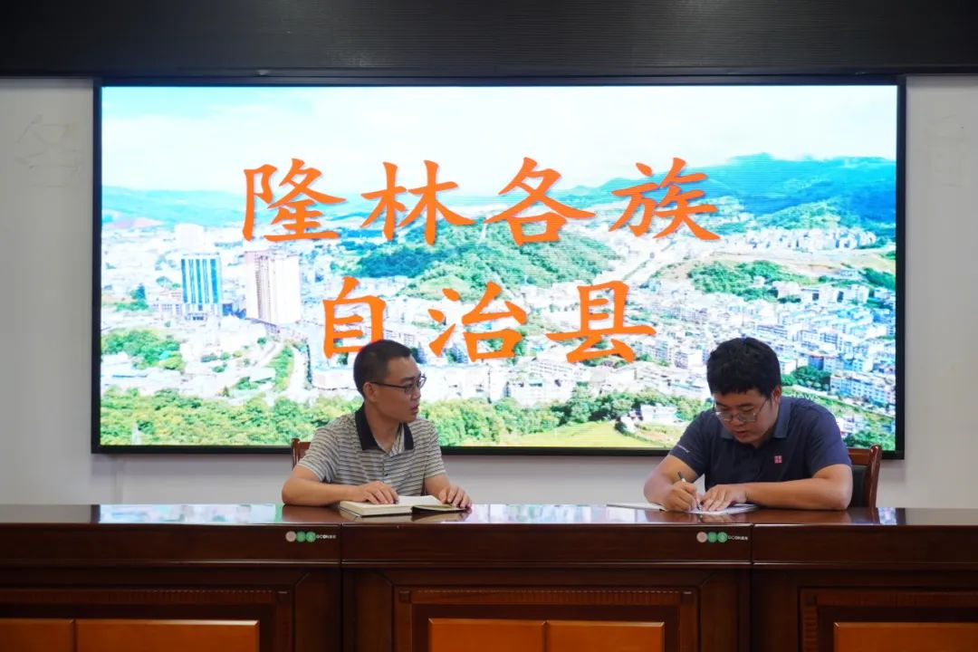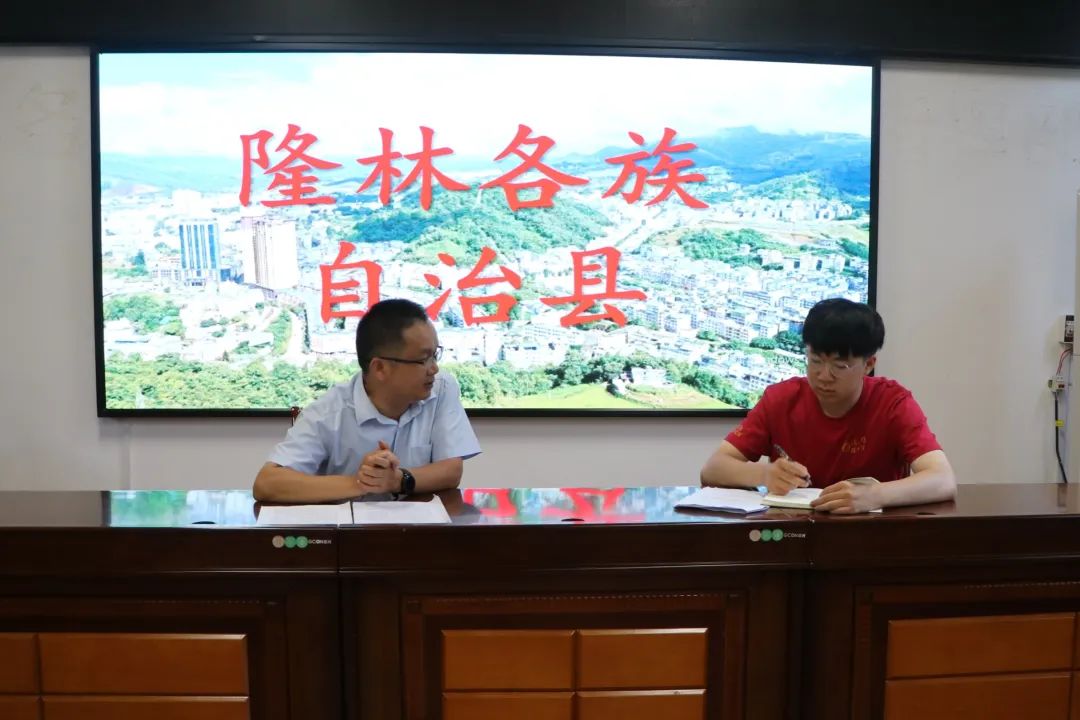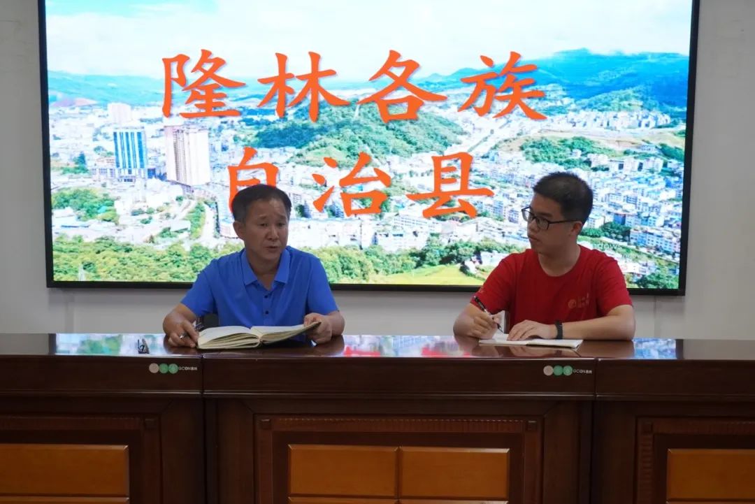 ▲郝浩宇访谈隆林各族自治县水利局党组书记、局长刘杰