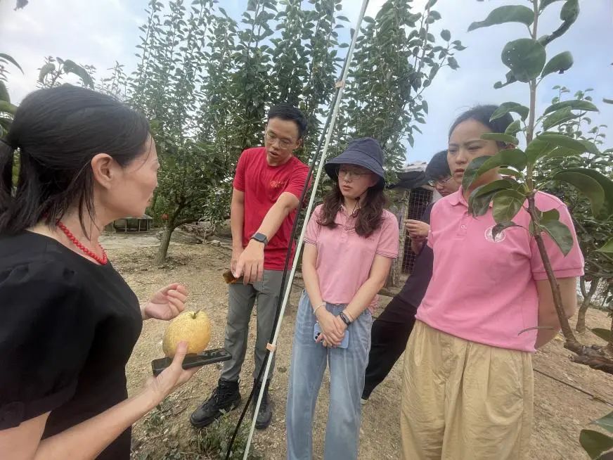 9月5日上午,访谈团抵达古塘乡牛山园金秋梨基地进行实地调研。该基地由湖南省威铭农业综合开发股份有限公司开发,种植面积高达5000余亩,公司种植了金秋梨、黄金梨、黄金枣、黄桃、油桃等优良果树品种,加工产品梨膏,带动周边100多人就业增收。