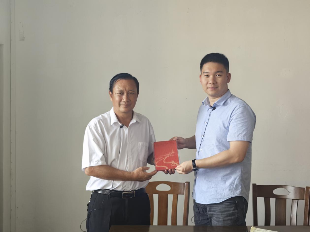 ▲王雨桉向富川瑶族自治县农业农村局局长(原乡村振兴局局长)尹宁赠送纪念品