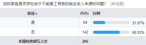 因不能及时复工,少部分同学的家庭缺乏收入来源,影响了正常的生活。不过各地区政府都采取了一定的措施,同学们所在的社区也采取了积极的防疫措施,很大程度上缓解了疫情给同学们带来的生活问题,满足基本生活需要。