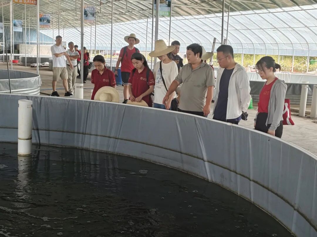 8月4日上午,调研团抵达余干县瑞洪镇新塘村渔业养殖基地,了解当地特色二次养殖产业。余干县瑞洪镇麻溪山以优质岩泉水闻名,水质优良,同时依托鄱阳湖畔天然的地理条件,余干县全县水产养殖面积超过38万亩,为泉水鱼生产提供了丰富资源。依托丰富的水系、渔业养殖、交通优势,2024年引进广东佛山粤赣珑头渔业有限公司、广东美思优康健康产业发展有限公司、广东逸隆农业有限公司及佛山品美甜源农业科技发展有限公司共同投资1亿元,组建江西赣鄱渔业有限公司并落户瑞洪。