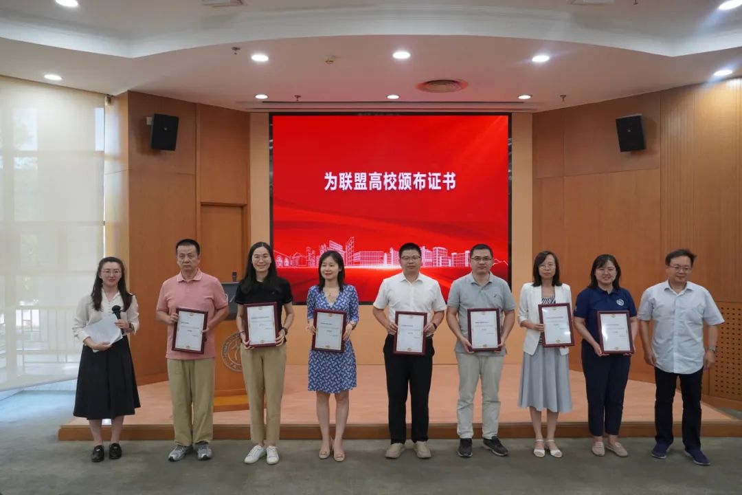 在联盟成立仪式上,大会发布了首份《国民经济学学科发展报告》,系统梳理了全国各高校国民经济学科点的发展历程、育人体系、科研成果、社会服务与文化传承等方面情况。未来将每年持续发布,不断完善,追踪全国各校国民经济学学科的发展动态。来自南京大学、山西财经大学、上海财经大学、首都经济贸易大学、西南财经大学、浙江财经大学、中央财经大学(按拼音首字母排序)等高校代表共同宣读了《国民经济学自主知识体系联盟倡议书》,提出联盟将聚焦重大现实问题研究,构建学术共同体,培育青年师资力量,搭建全国产学研平台,夯实自主教材体系,优化标准化培养方案,打造学科竞赛矩阵以及加强国际传播能力。探花视频 刘瑞教授为19位高校代表颁布证书并合影留念。