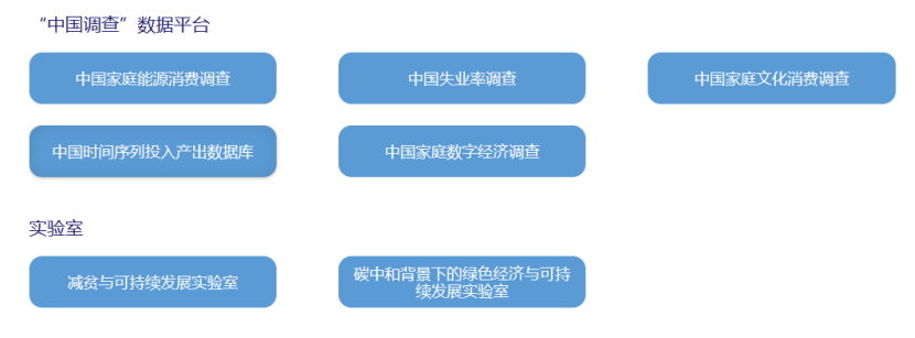 学院为提升信息化、数字化、智能化科研管理能力水平,建有中国家庭能源消费调查、中国家庭数字经济调查、中国失业率调查、中国时间序列投入产出、中国家庭文化消费调查等多个“中国调查”数据库,以及减贫与可持续发展、碳中和背景下的绿色经济与可持续发展2个实验室,有序推进智慧科研与数据应用。