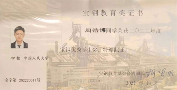2019年至今,学院共有6人次荣获吴玉章奖学金、宝钢优秀学生奖、京东特等奖学金,39人次荣获国家奖学金,多名本科生在SSCI期刊发表论文。