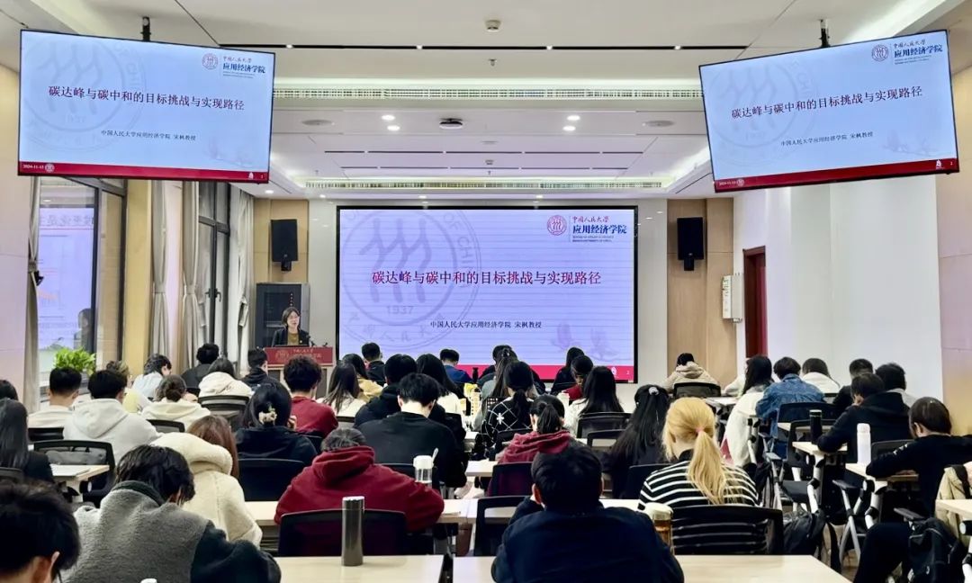 宋枫向大家讲解了“双碳”目标的基本概念、提出背景、机遇挑战和实现路径,强调碳达峰、碳中和既是社会主义现代化建设的必然要求,也是贯彻新发展理念、构建新发展格局的重要举措。她用碳科学的四个科学和碳经济的九个典型事实,指出我国面临着高碳能源禀赋、能源供给结构以及高投入的终端需求结构等现实约束,短期内会面临经济增长、经济结构转型与减排目标等多目标统筹的挑战。通过详尽的数据与案例,她从经济学视角说明建立高效率的碳体系是长期性、系统性工程,要遵循“发展优先、系统统筹、有效激励和国际协调”原则,寻找适合国情与制度基础的政策工具组合集,综合运用政策工具打出组合拳。宋枫指出,作为新时代新征程的青年学生,要坚定不移听党话、跟党走,坚持把马克思主义基本原理同中国具体实际相结合、同中华优秀传统文化相结合,立足中华民族伟大复兴战略全局和世界百年未有之大变局,不断推进马克思主义中国化时代化。