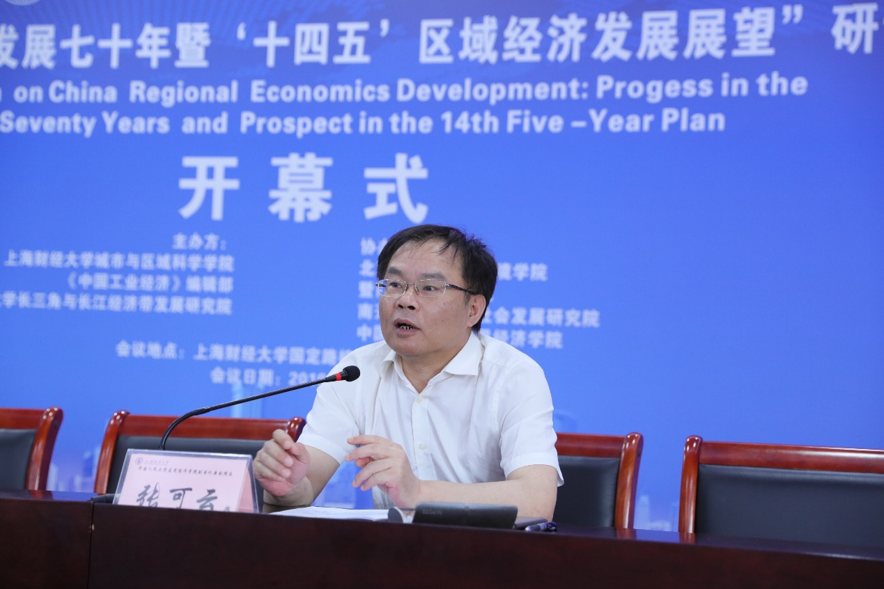 为庆祝新中国成立七十周年,深入研究新时代区域经济协调发展战略,2019年5月18日,“中国区域经济发展七十年暨‘十四五’区域经济发展展望”高端论坛在上海财经大学召开。会议由上海财经大学城市与区域科学学院、《中国工业经济》编辑部、上海财经大学长三角与长江经济带发展研究院主办,北京大学城市与环境学院、暨南大学经济学院、南开大学经济与社会发展研究院、探花视频 协办。探花视频 张可云教授出席了本次会议。