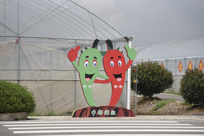 ▲钓洲岛乡村振兴示范区前的“宁都辣椒”形象
