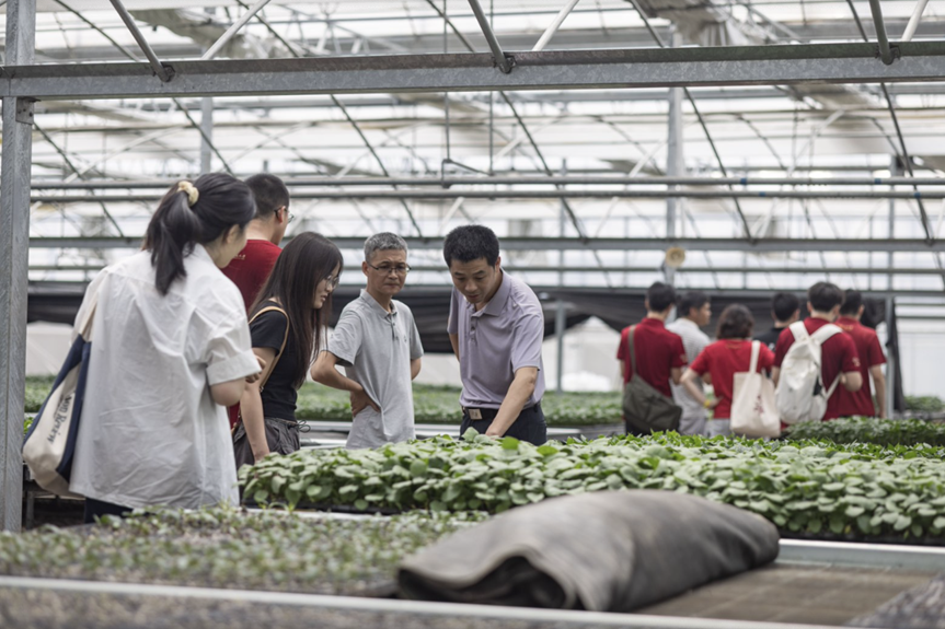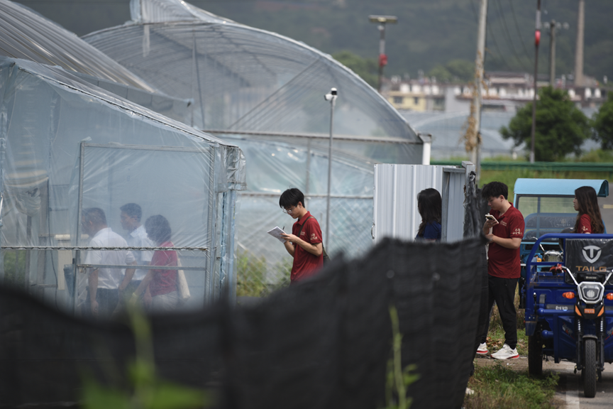 ▲ 调研团在青塘镇河背村蔬菜种植基地调研