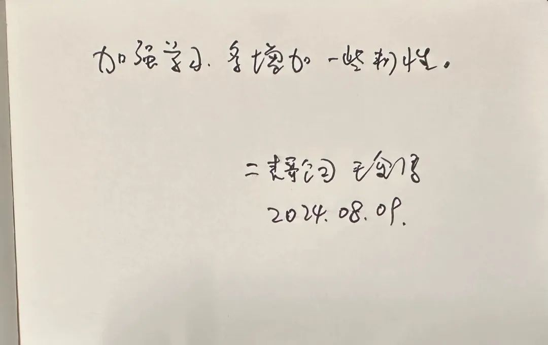 王金涛时常以“国民表率,社会栋梁”的标准来严格要求自己,踏踏实实地创业和做事,如今他又想在推动当地乡村振兴的路上,探索出一条可行的道路,在调研结束后,王金涛在“832工程”脱贫攻坚史记录册上写下这样一段话:“加强学习,多增加一些韧性。”他希望无数“娘家”人去努力实现人大人秉承的“复兴栋梁,强国先锋”理念,为国家和社会的发展做一个“助推器”。