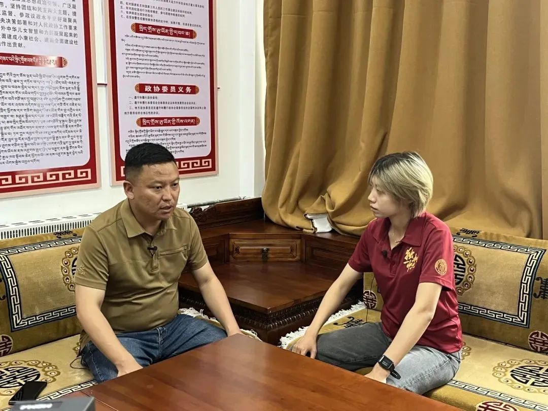 ▲西藏大学经济与管理学院硕士生任文丽访谈原乡村振兴局局长索朗加措