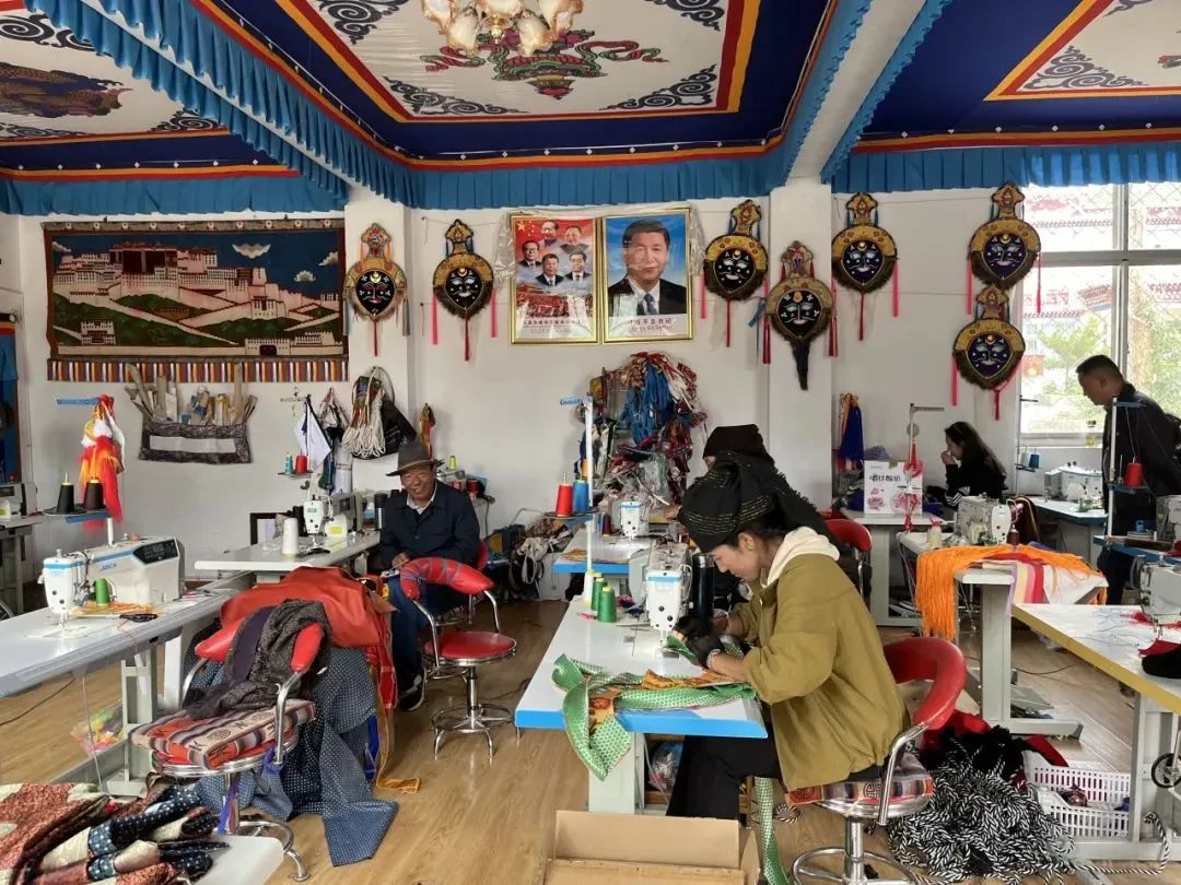 阿古传统藏戏服饰农牧民专业合作社成立于2014年,以传承和弘扬传统藏戏服饰工艺为己任,致力于展示西藏各族人民精神风貌和传统文化、推广非遗文创产品、打造西藏特色文化名片。合作社经营范围广泛,包括藏式服饰、道具、帐篷、旅游纪念品等,通过结合传统工艺与市场需求,拓宽了销售渠道,产品热销于西藏大型戏剧演出场所、文化集团及旅游市场。合作社不仅在传承和创新西藏民族传统文化上扮演着重要角色,还在助力群众增收致富、推动脱贫攻坚中发挥着关键作用。2023年,合作社为15户家庭提供了就业机会,成员月均收入3000至4000元,年人均分红3500元,户均年增收3万元,显著超出当地农牧民收入水平。此外,合作社还通过持续的技能培训和实地辅导提高合作社成员的专业水平,使其具备一技之长,从而增强了他们的就业竞争力和自我发展能力。这种综合性的支持措施不仅显著改善了群众的经济状况,也激发了他们自力更生的内生动力,为实现乡村振兴注入了源源不断的活力。