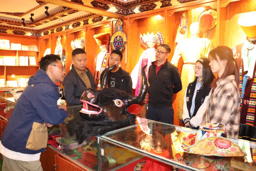 ▲访谈团在阿古藏戏传统手工艺合作社调研