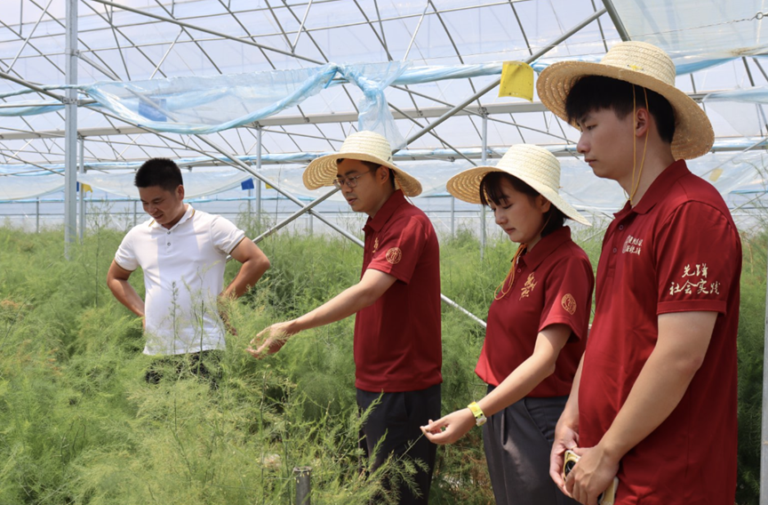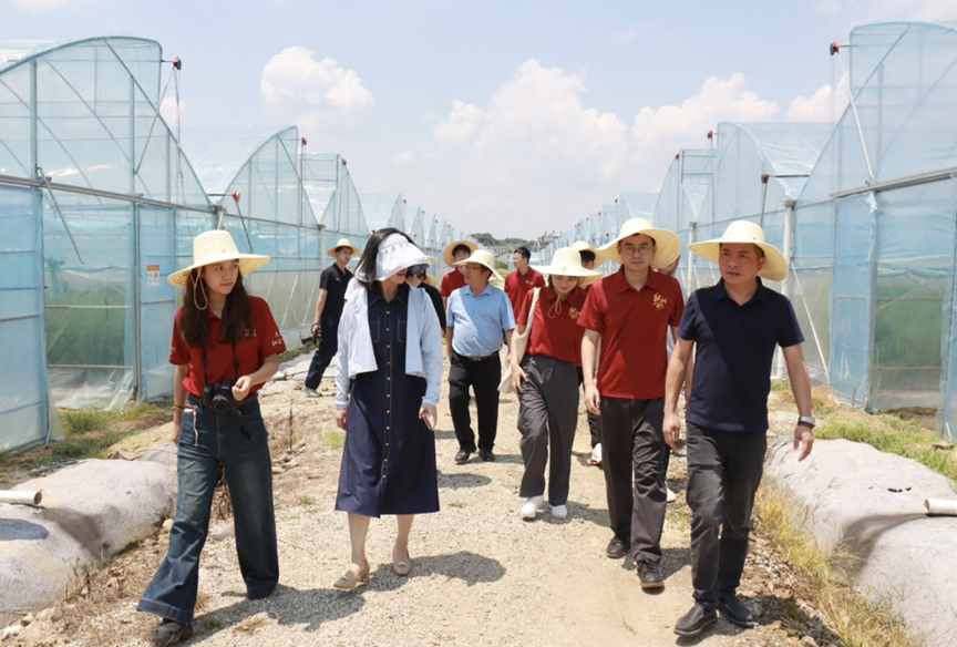 ▲调研团在牛田镇峡圳村芦笋种植基地调研