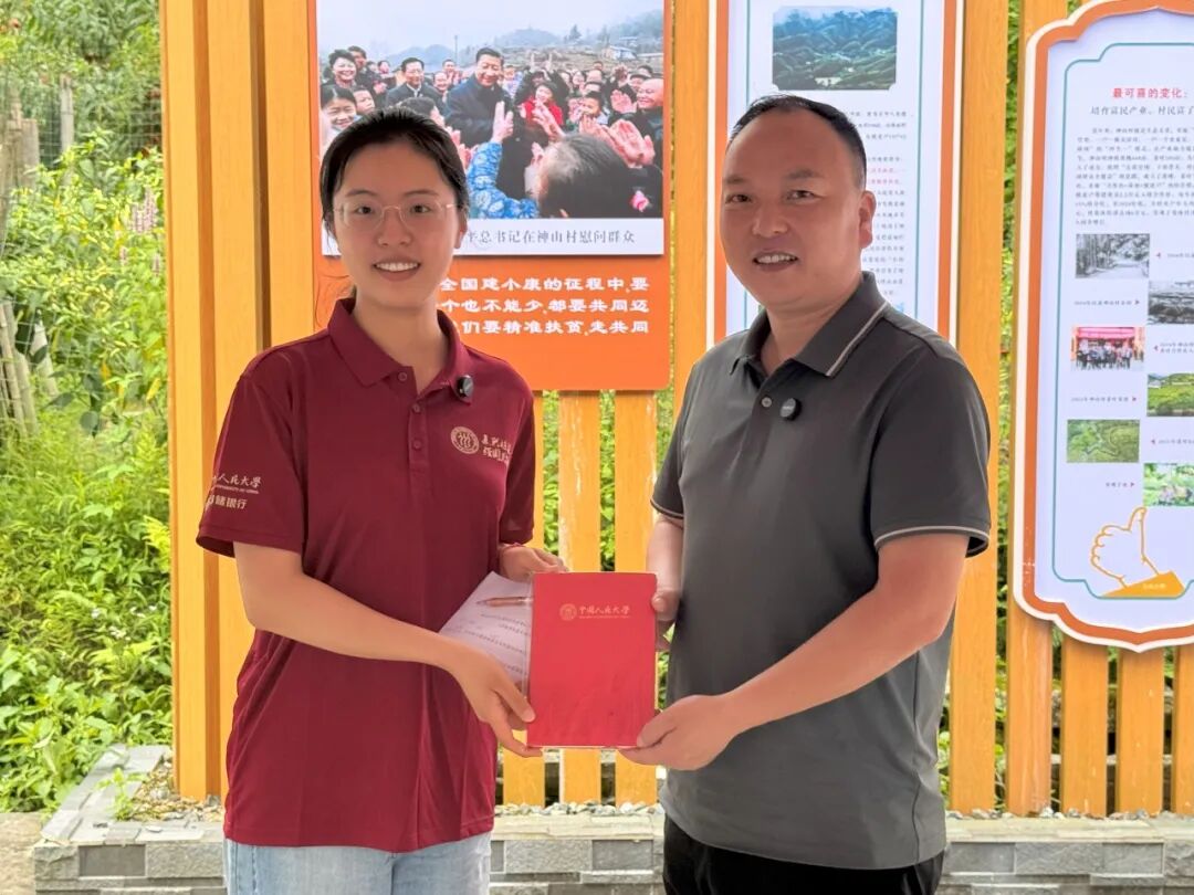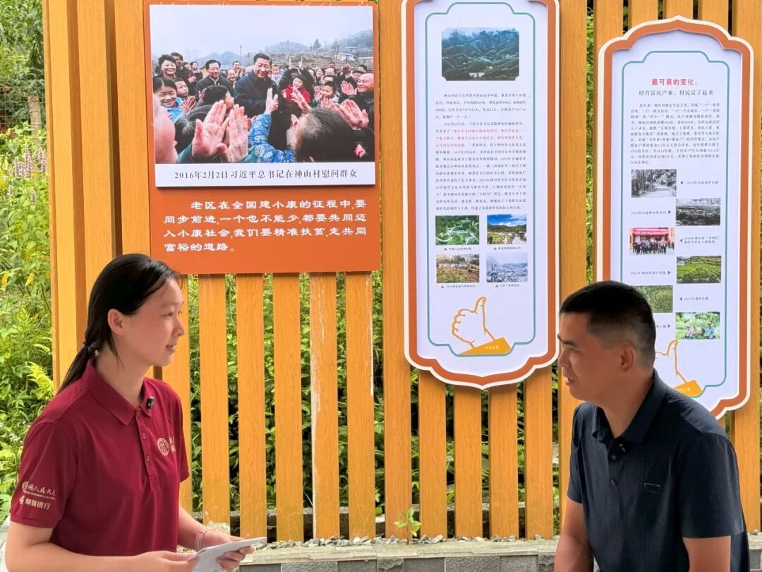 ▲中国人民大学应用经济学硕士生李昕玥访谈茅坪镇副镇长兼任神山村支部书记彭展阳