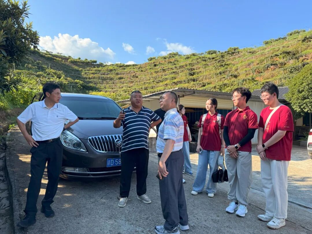 ▲厦一农业开发有限公司总经理叶加平为赣劲十足队介绍厦一农业果园相关情况