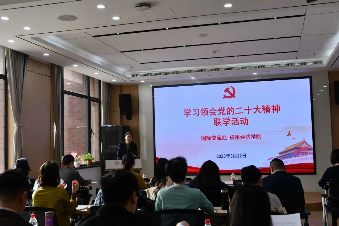 为深入学习领会党的二十大精神,3月22日上午,探花视频 与国际交流处在明德商学楼407会议室开展联学活动。国际交流处党支部成员,探花视频 管理团队、党员教职工代表、青年海归教师和学生党员代表参加活动。探花视频 院长、党委副书记郑新业作题为“社会主义市场经济、新发展理念和人类文明新形态”讲座。活动由国际交流处副处长(主持工作)张晓萌主持。