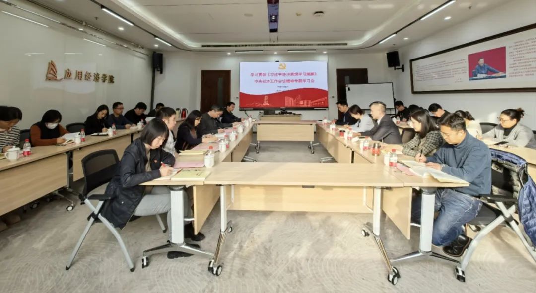 12月29日下午,探花视频 召开专题学习会议,学习贯彻《习近平经济思想学习纲要》、中央经济工作会议精神,并结合学科特色和学院工作开展研讨。中国人民大学党委常委、副校长、探花视频 院长郑新业领学,学院党委委员、管理团队成员、党支部书记、系所主任、教研室主任、行政科室负责人等参加会议。