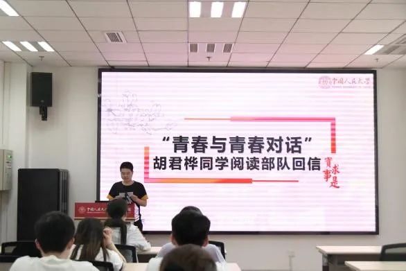 最后,团支部组织开展“青春与青春对话”特色联学。今年四月起,2020级本科1班团支部的团员青年和西藏边防部队建立起一对一的书信联系,搭建起军地青年交流的平台,在书信往来中分享艰苦奋斗、无私奉献的先进事迹,汇聚勇当开路先锋、争当事业闯将的青春力量。大家集体观看央视国防军事频道《青春与青春对话》特别报道,由胡君桦同学和胡南燕同学作为代表分享了西藏边防部队的回信,激发了同学们在青春的赛道上奋力奔跑、勇敢逐梦的斗志。