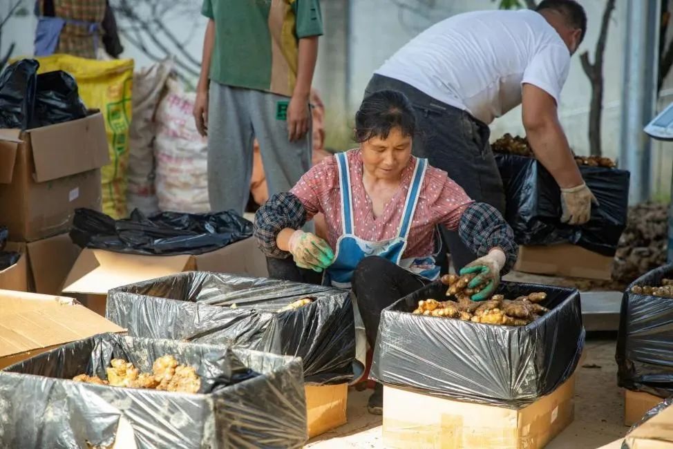 ▲贵州黔棠姜生物科技有限公司员工分拣小黄姜