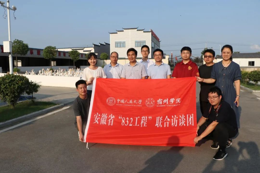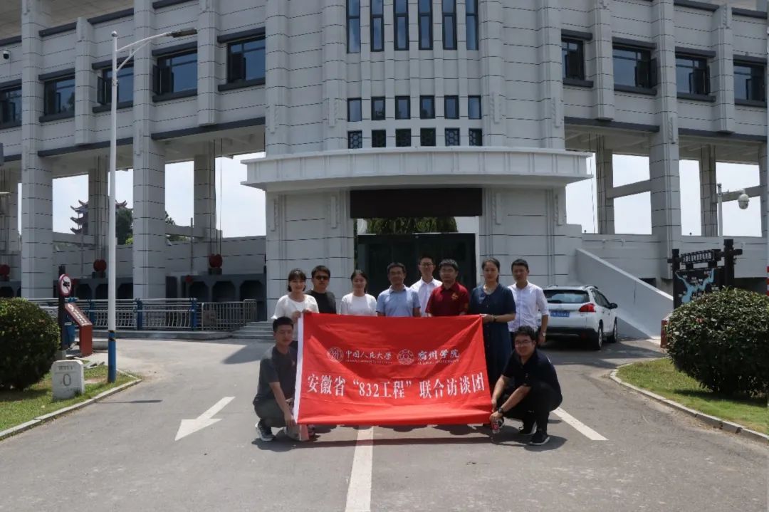 2023年8月,中国人民大学与宿州学院组建联合传承队,赴安徽省开展“832 工程” 访谈和调研工作,记录安徽脱贫攻坚的伟大成就,为世界减贫事业提供安徽案例、安徽经验。同时期望加强中国人民大学与宿州学院在学科建设、人才培养、科学研究和社会服务等方面的合作交流, 共同推动两校高质量发展。