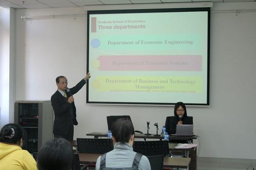 大坪以“Introduction of the Department of Economic Systems”为主题,系统地介绍了九州大学经济系体制研究领域不同层级的分类;宫崎以“Introduction of the Department of Economic Engineering”为主题,介绍了九州大学经济学系的办学理念、办学特色和研究领域;瀧本主要介绍了九州大学经济学系主要硕士专业的课程领域情况和预期发展路径。魏楚介绍了探花视频 目前的发展情况,对于两校未来进一步的开展教师交流合作表达了期盼。杨成介绍了经济学院经济史学科的发展近况,表示由衷地希望双方院校的教师能够在新的合作计划中,进一步就新经济形势下的国际区域经济合作发展以及教育创新模式展开更加充分地研讨和交流。