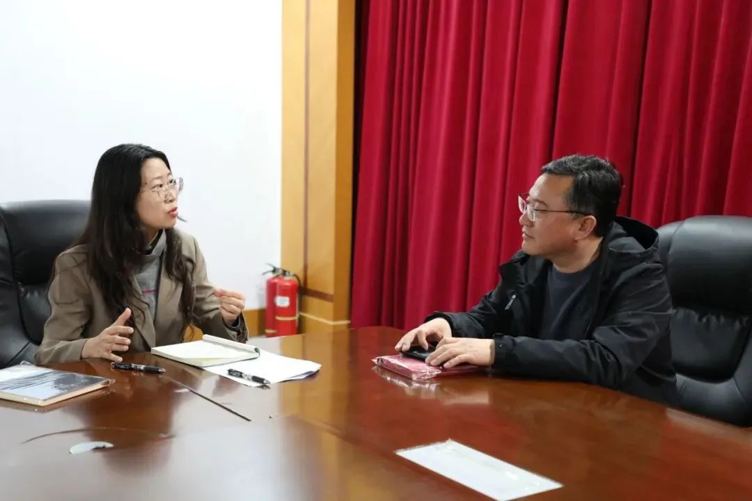 ▲河北大学新闻传播学院副院长商建辉教授访谈平山县农业农村局党组书记张建春