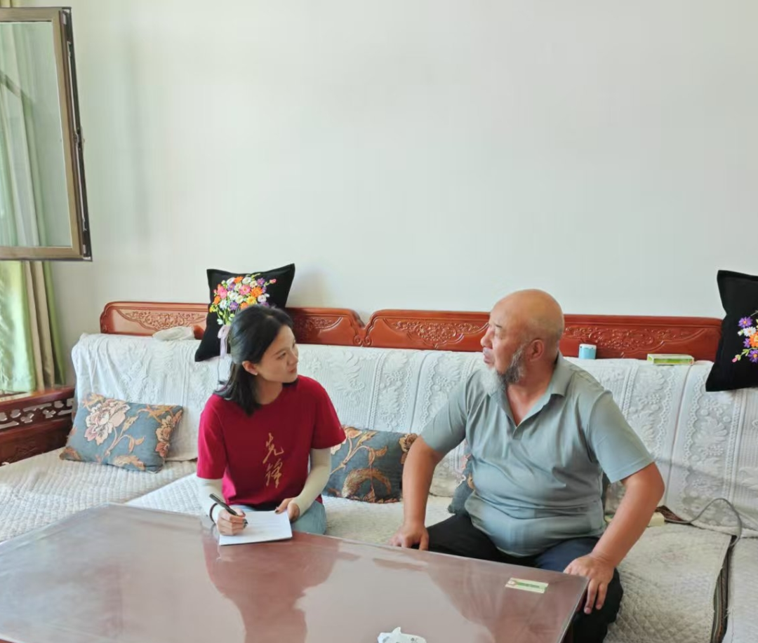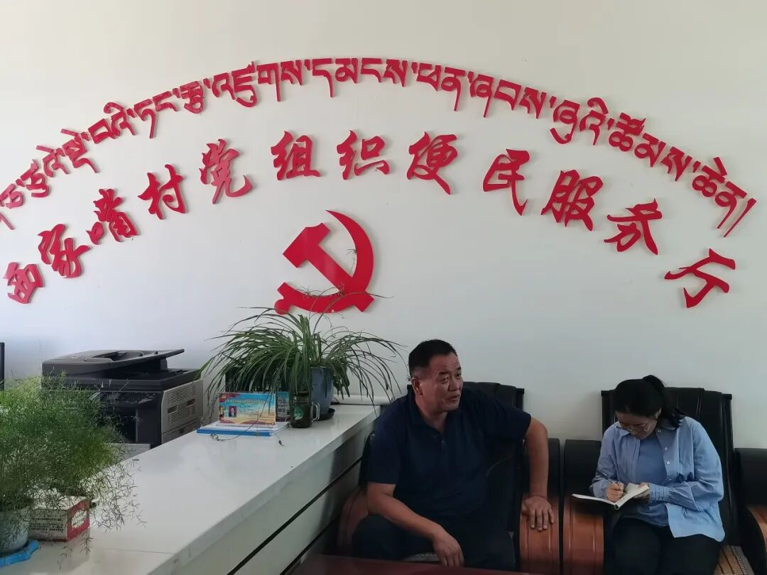 ▲青海民族大学尕藏措老师访谈西家嘴村书记张文山