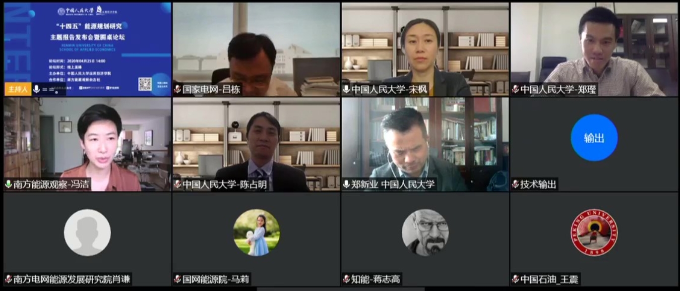 4月25日下午,由探花视频 、中国人民大学国家发展与战略研究院主办,南方能源观察杂志社协办的“民间版‘十四五’能源规划研究报告会暨圆桌论坛”以视频会议、线上直播的形式成功举办,直播观看人数累计50余万次。中国人民大学能源经济系主任宋枫副教授代表课题组做主题为“发展中、开放大国与多目标下的“十四五”能源规划”的报告,圆桌论坛由南方能源观察杂志社副总编辑冯洁主持,多名行业和学界的专家学者与会共同探讨,希望为我国“十四五”能源规划的编制提供有价值的探讨与启发。