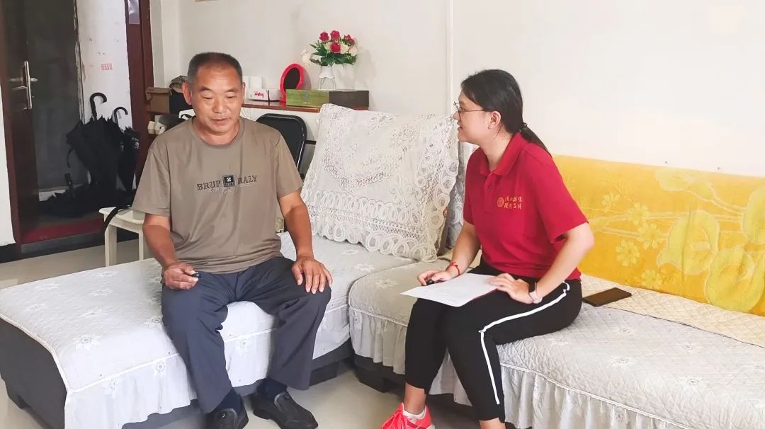 ▲在青海省乐都区,青海民族大学本科生张馨竹访谈高庙镇蒲家墩村脱贫户王国全