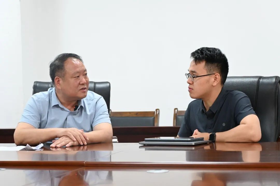▲调研团新闻学院助理教授王达访谈区政府副区长罗继平