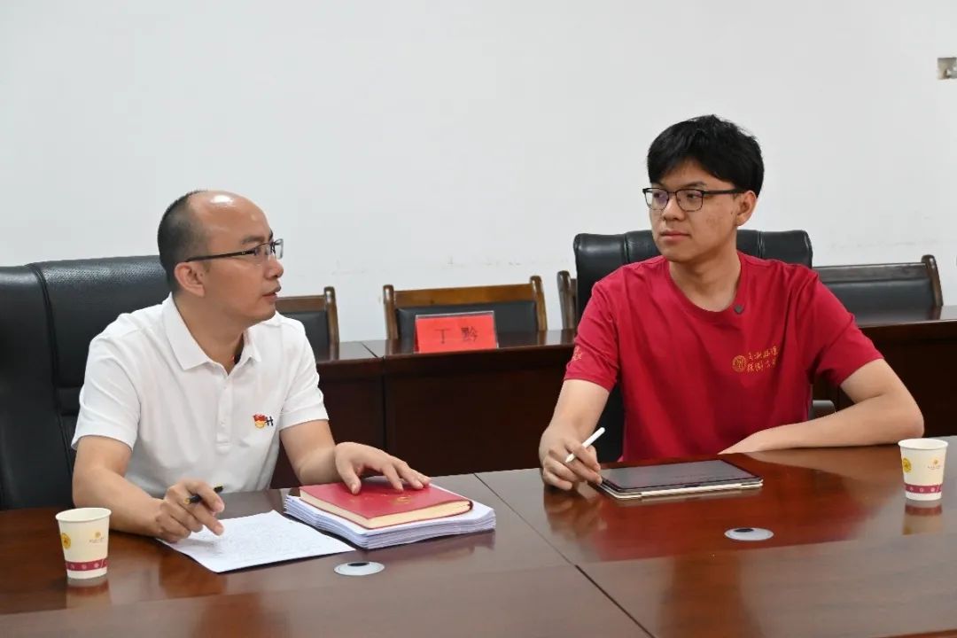 ▲调研团应用经济学院本科生苏文杰访谈访谈区委常委、副区长,驻村第一书记张贵斌和前任驻村第一书记(脱贫攻坚时期),现任滑石乡副书记、乡长吴鹏飞