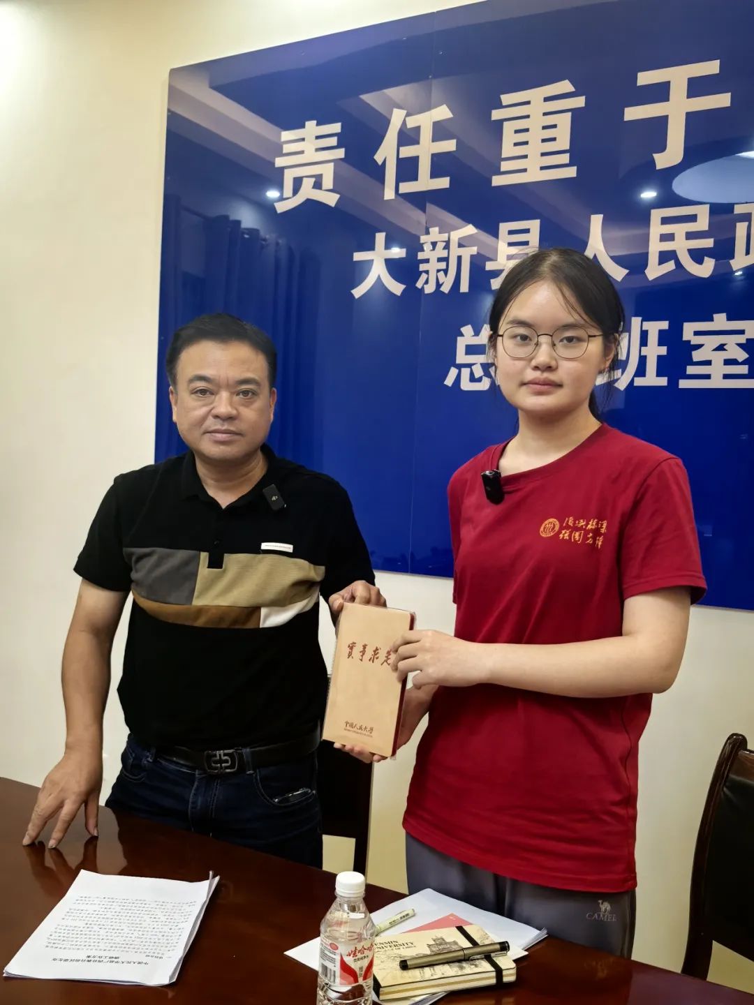 ▲本科生金小旋访谈大新县雷平镇党委书记(原堪圩乡乡长、全茗镇镇长)韦成刚
