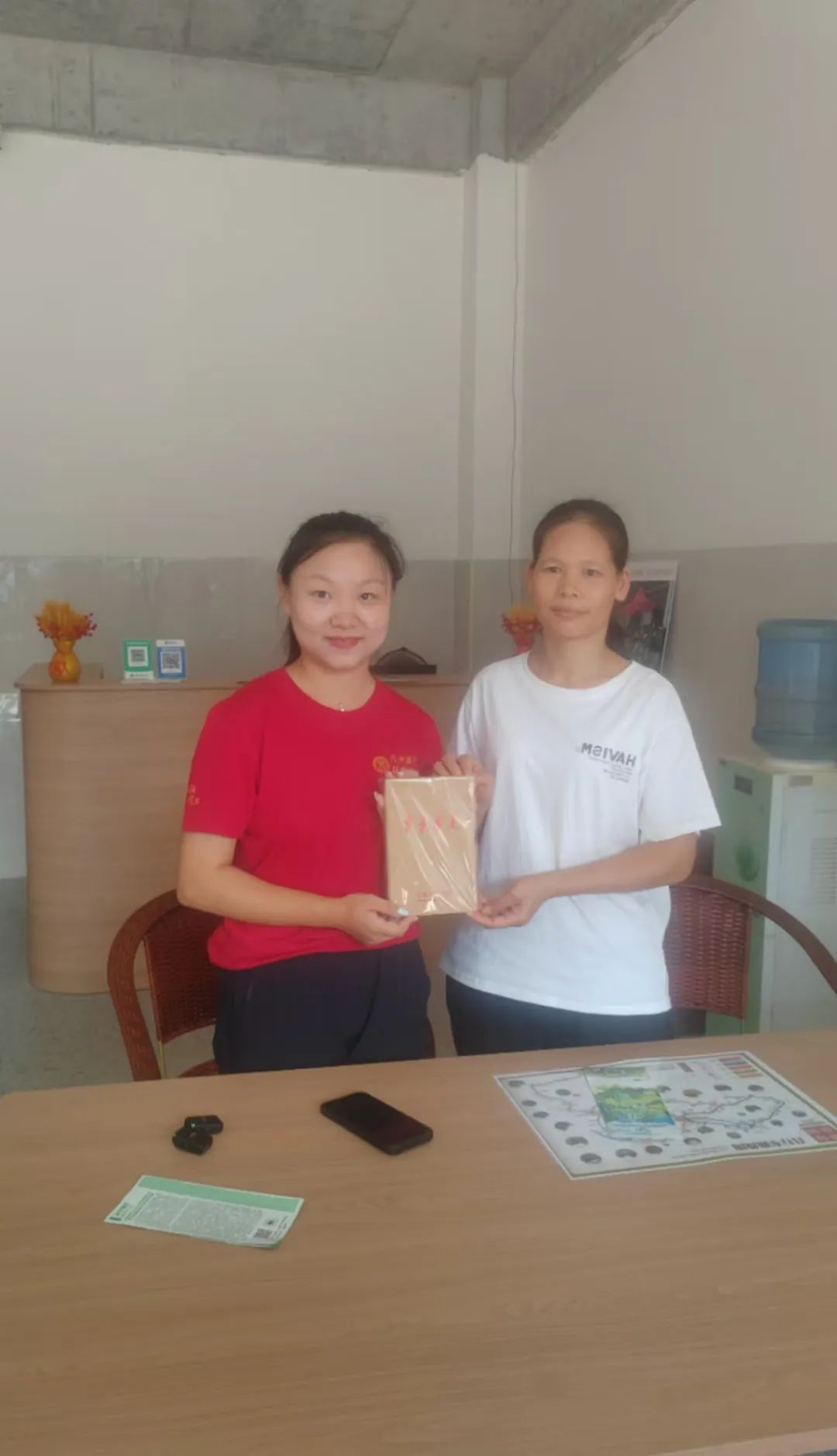 ▲本科生尹歆雅访谈县城乡综合执法局副局长(原派驻橄圩乡武姜村党组织第一书记)雷洪向