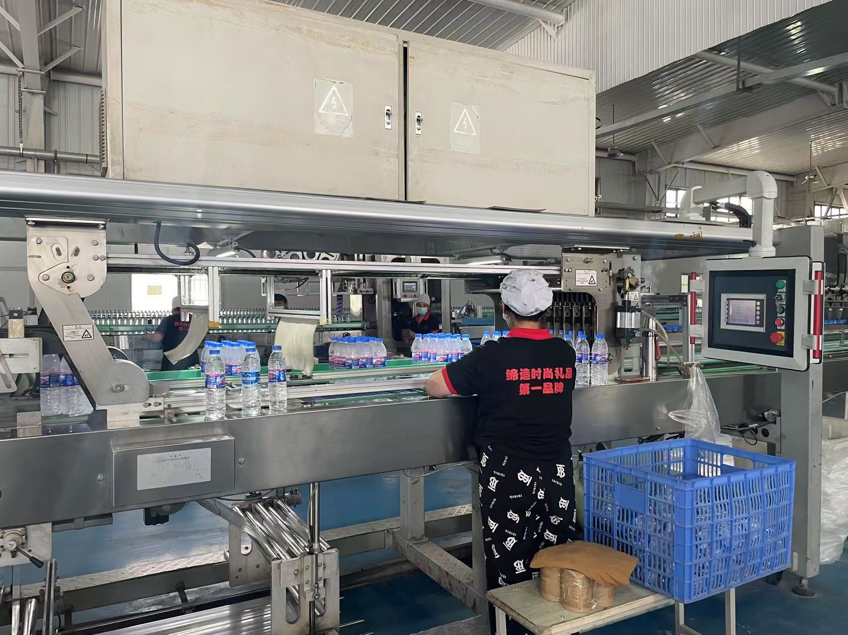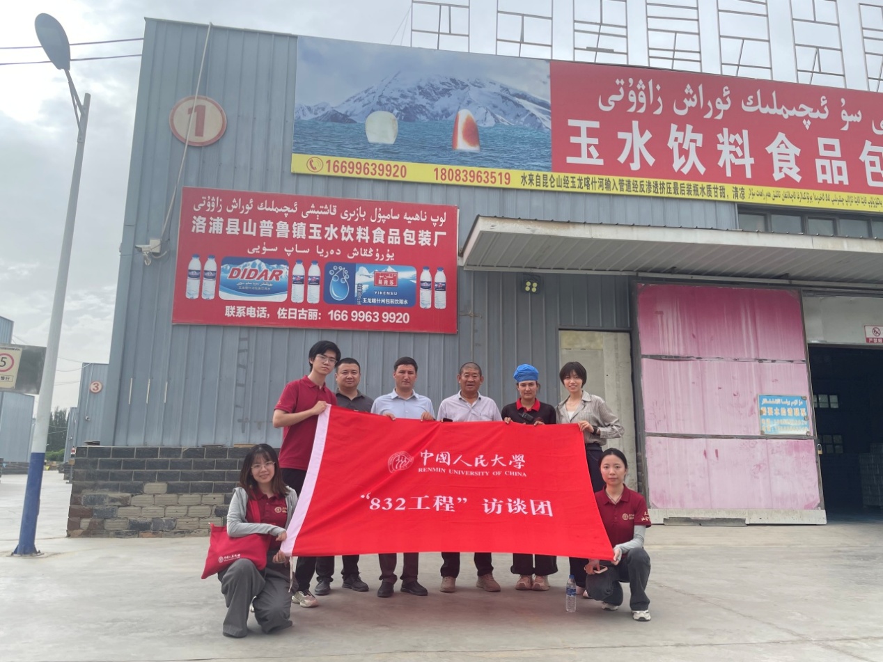 调研团抵达山普鲁镇玉水饮料食品包装厂。该厂前身为新疆冰西域食品饮料有限公司洛浦分公司,2023年为积极响应环保政策号召,投资500余万搬迁至洛浦县山普鲁镇扶贫产业园园区。凭借天然水源优势与严格品控体系,企业生产的矿泉水畅销南疆四地州。目前,工厂致力于构建集原料开采、生产加工、产品销售于一体的一条龙服务体系,现有工人30多人,平均工资3000元。