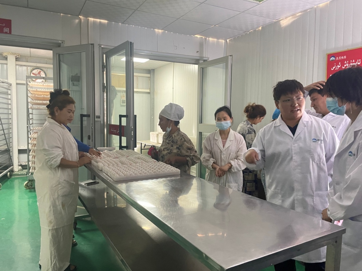 调研团抵达恰尔巴格镇加依托格拉克村古乐万食品有限公司。