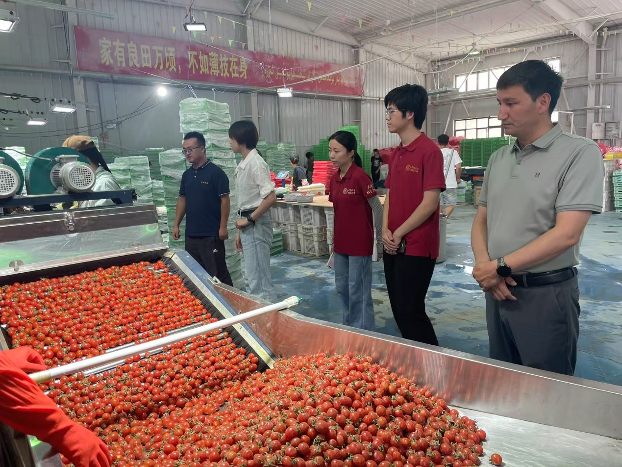 7月16日上午,调研团抵达和田城源生态农业科技有限公司。该公司成立于2024年1月,是一家集农业生产种植、农产品加工、销售,果品包装筐及配套辅材销售、冷库存储、葡萄代购及销售为一体的农业综合性企业。公司主要以葡萄和圣女果等特色林果种植为主,目前总投资达2000多万元,厂区位于多鲁镇扶贫产业园,销售范围覆盖和田及周边地区。
