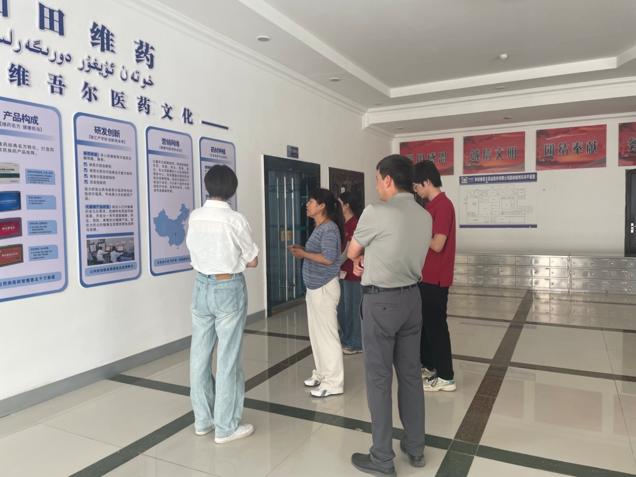 7月16日下午,访谈团到达和田维吾尔药业股份有限公司,调研维药产业发展情况。该公司是一家科技型民营制药企业,是国家级“知识产权优势企业”,自治区级“专精特新中小企业”“农业产业化重点龙头企业”,拥有员工260余人,2024年公司实现营业收入27182.6万元,同比增长12.64%,税金4400万元,核心产业涵盖维药研发、生产、销售及药材种植,拥有片剂、颗粒剂等生产线和4个独家国药准字号产品,其中2个进入国家医保目录。