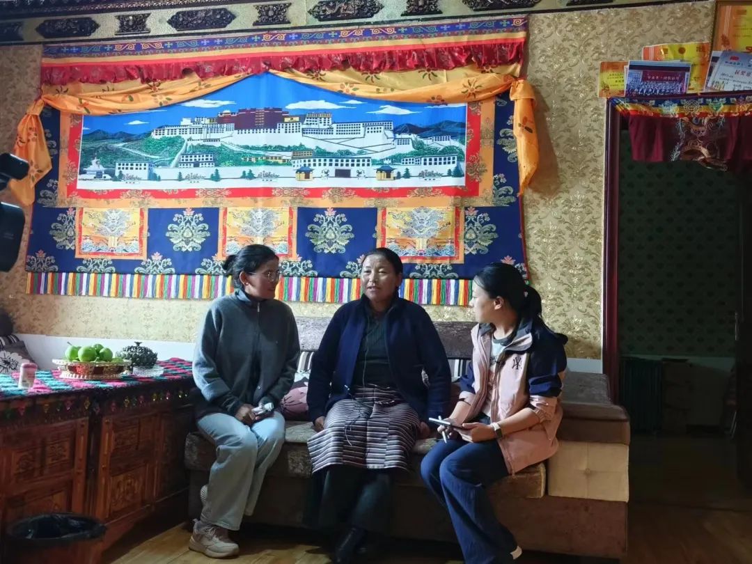 ▲西藏大学经济与管理学院硕士生任文丽访谈冷达乡共康村党总支书记次仁顿珠
