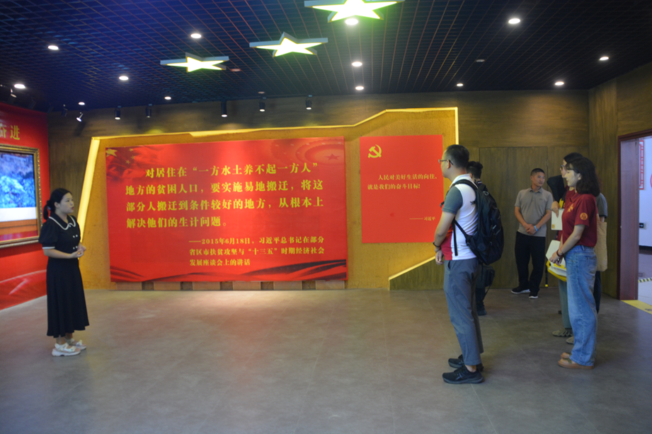 调研团首先来到新民社区感恩记忆馆。该馆集中展现了惠水县10个镇街108个村4149户17670名群众在易地扶贫搬迁前后的生产生活情况对比,由搬迁前的生活、搬迁走出大山、搬迁后的新生活、走进幸福家园4个板块组成。调研团详细了解惠水县的致贫原因和易地搬迁举措,认真学习贵州省“以‘六个坚持’统领‘前半篇文章’,以‘五个体系’续写‘后半篇文章’”的易地搬迁政策设计。