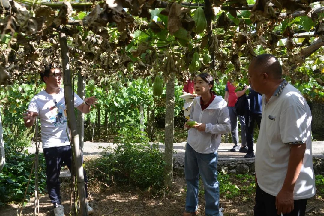 ▲调研团参观惠水县好花红镇弄苑村佛手瓜种植情况