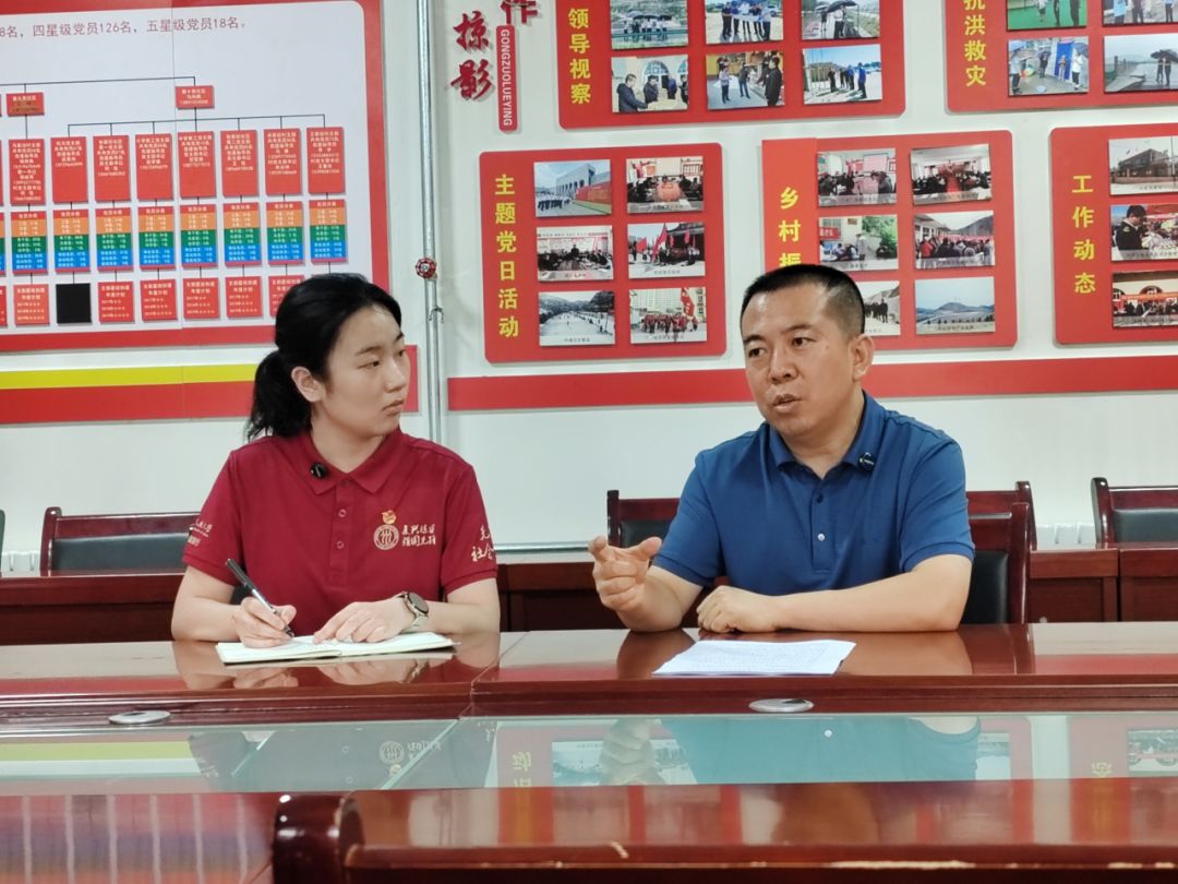 ▲中国人民大学本科生王琪皓访谈沙滩坪村驻村第一书记刘新国