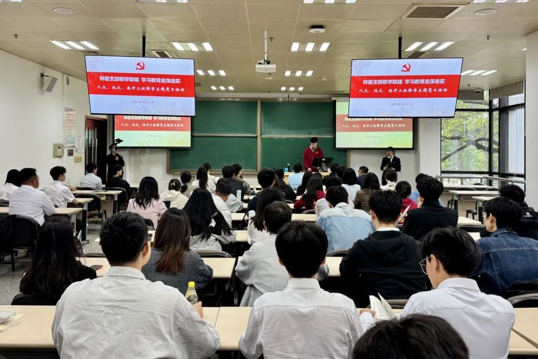 为扎实开展深入贯彻中央八项规定精神学习教育,持续贯彻落实习近平总书记在中国人民大学考察调研时重要讲话精神,发挥全国高校百个研究生样板党支部的示范引领和榜样带动作用,加强学生党员作风建设,4月21日,探花视频 产业经济学博士生联合党支部,北京大学基础医学院生物化学与生物物理学系研究生党支部,南开大学金融学院博士生党支部、金专第四党支部及本科生党支部,共同开展“样板支部联学联建,学习教育走深走实”主题党日活动。