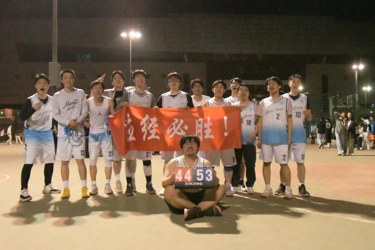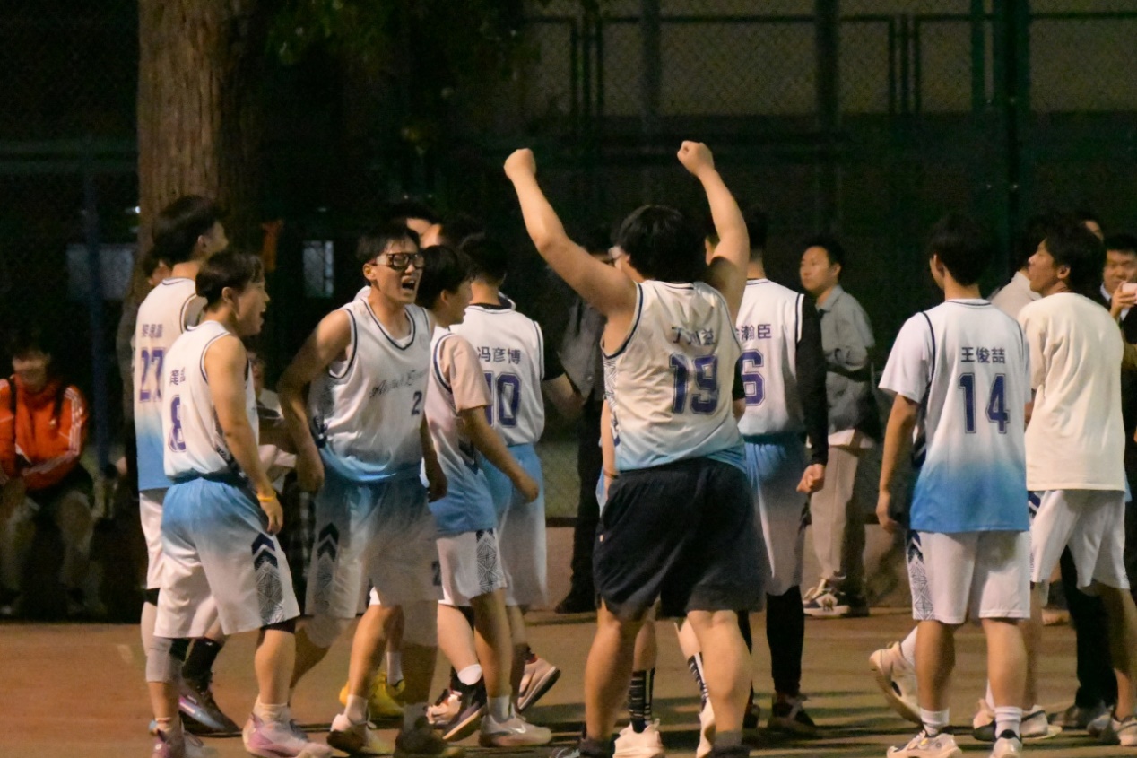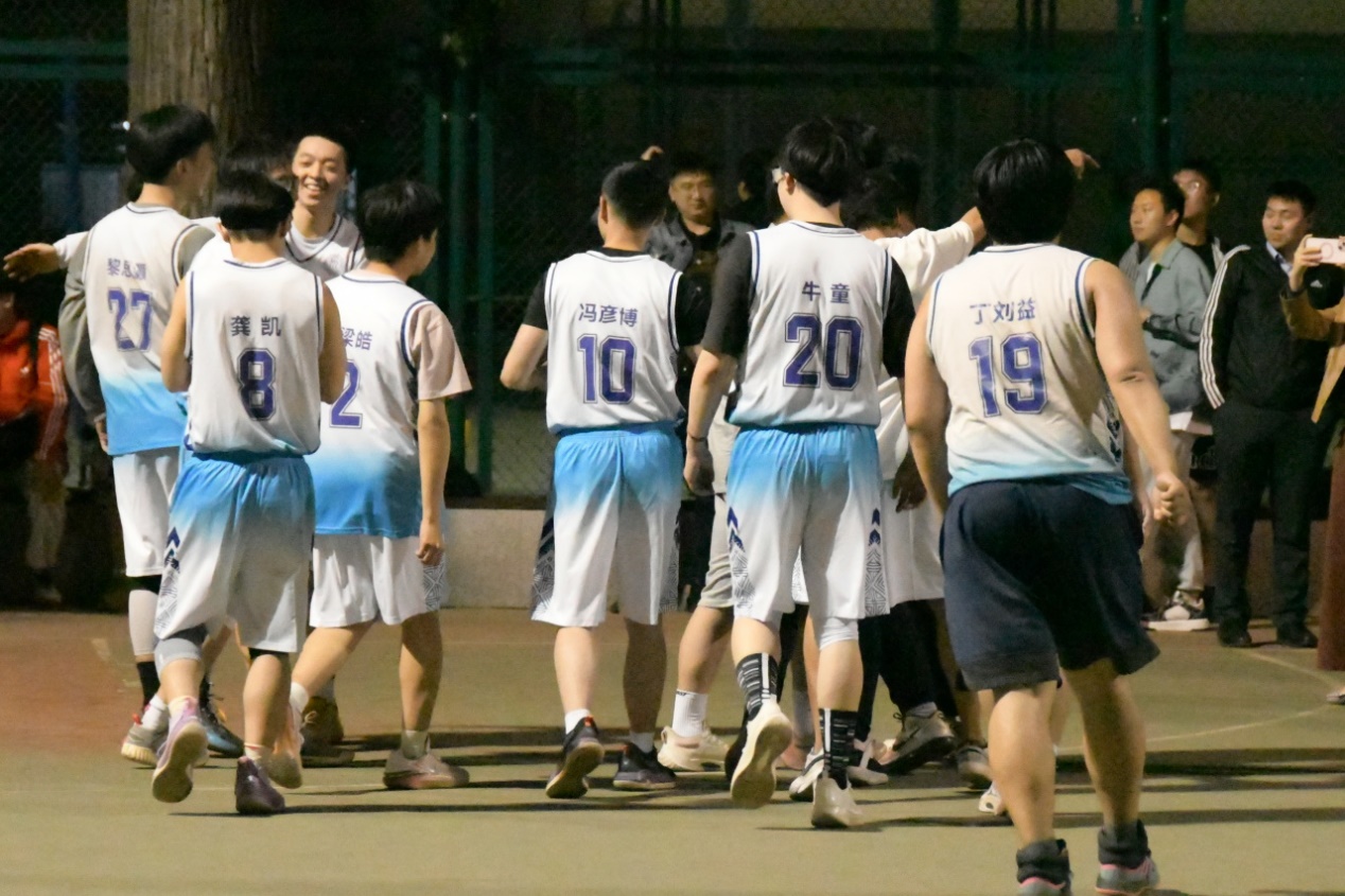 比赛来到最后一节,双方队员体能都有所下降,在进攻端迟迟打不出节奏之时,得益于教练队伍的关键指挥、队员们此战必胜的决心、场下观众的激情欢呼,在8号龚凯打进高难度2分上篮后,我方努力扩大领先优势,在防守端、进攻端都打出了应经学子的自信和风采。27号黎思灏在内线辗转腾挪冲击对方中锋,21号孙铭壕和20号牛童见缝插针冲击篮框,13号吴语杰利用娴熟的运球消耗对方体力,1号黄文牢牢跟住对方强劲主力。伴随着场边观众的呐喊,篮球一次次应声入网,我方保持着6分的优势来到了比赛的最后30秒,球员们在最后时间依旧牢牢绷紧、不敢懈怠,积极拼抢进攻篮板。随着技术台倒计时3、2、1,1号黄文外线接球三分出手,此时裁判也吹响了全场结束的哨子。篮球空心入网,全场在短暂的寂静下爆发出雷鸣般的呼声与掌声,队员们相拥而泣,观众们也发出了由衷的赞叹与欢呼。最终,我院以53:44战胜数学学院,夺得乙组冠军!