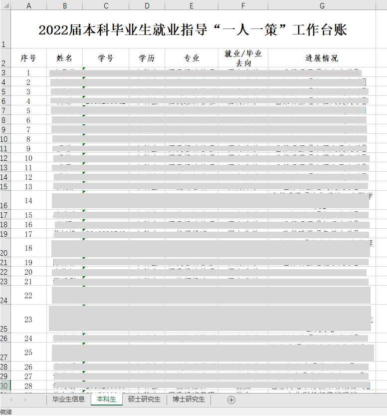 提前开展毕业生基本情况摸底工作,制作2022届毕业生摸底汇总台账,形成摸底分析。学院领导、班主任、导师、辅导员等团队多次开展就业工作座谈会、协调会,动员导师、班主任利用自身资源为所带学生提供就业和岗位信息,建立和落实“一人一策”指导机制,为学生修改简历,强化就业精准服务,做到一对一推荐、点对点指导。